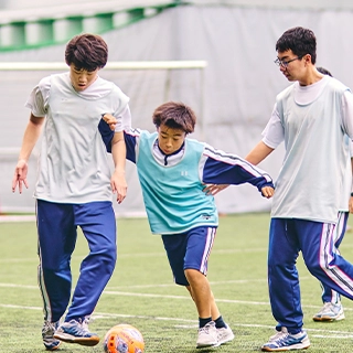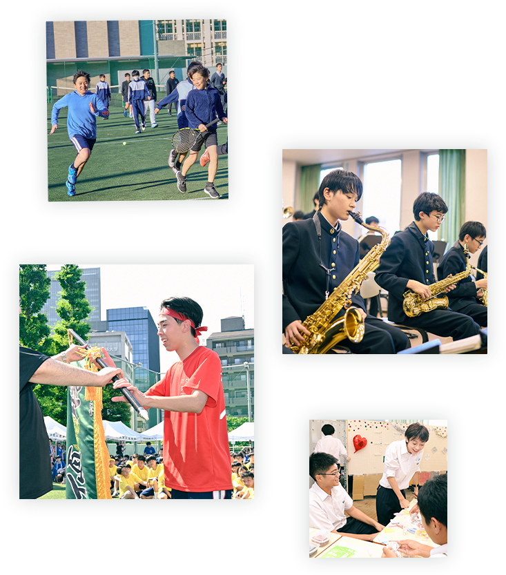 落ち着いた雰囲気に包まれた学び舎で、生徒主体の学校生活を送ります。学校行事や様々な部活動が個性を発揮する舞台となります。