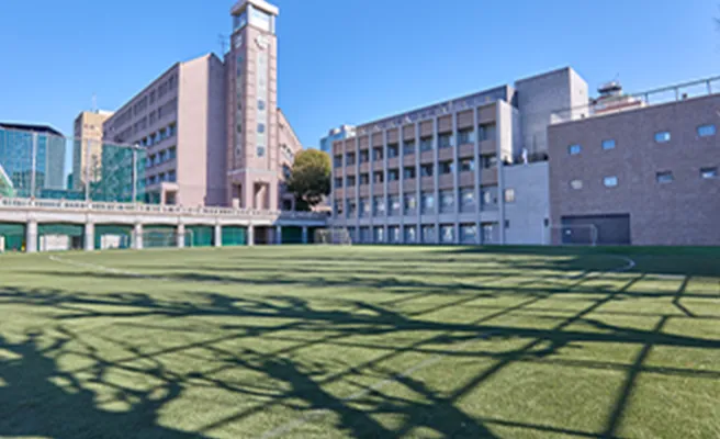 上下2面のグラウンドがあります。人工芝で整えられており、授業やクラブ活動に使用します。