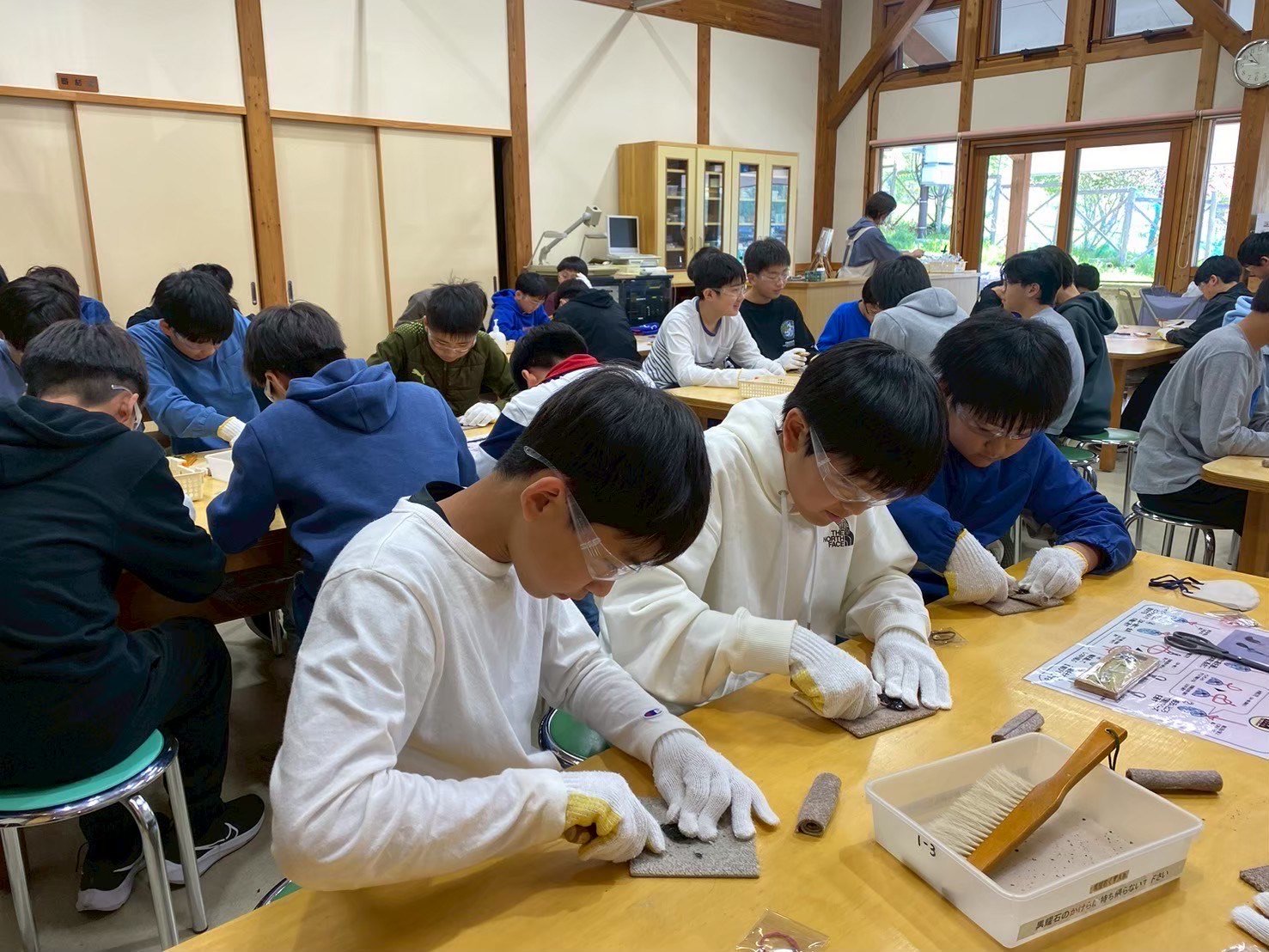2日目に自分たちで作った黒曜石のキーホールダーと、お小遣いギリギリまでたくさん買ったお土産を抱えて帰宅。あっという間の2泊3日。お土産のリンゴ餅を頬張って喜ぶ弟の顔を眺めながら、僕は、共生、内省、という言葉を反芻したのでした。(中1 O.I)