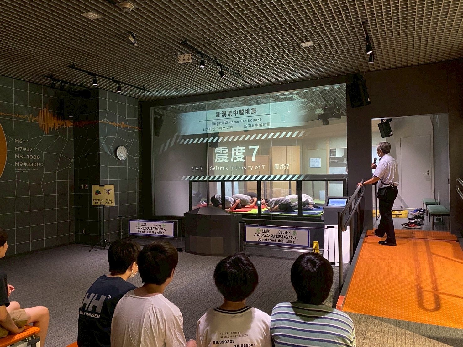 次に地震についての体験です。地震には震度という、観測地点での揺れの大きさがあります。震度には10段階あります。実際の大地震の揺れを体験できる装置に乗りましたが、揺れがすさまじく、立てないくらいでした。関東大震災についての映像も見ました。ここでは地震というのはいつ、どこで起こるかわからないものであり、万が一のために災害が起きても安心できる防災について語っていました。