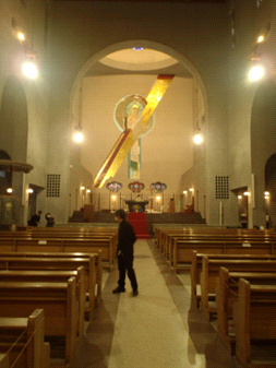 12時48分、列車は定刻通り広島駅に到着しました。やはり日本の鉄道は時間に正確です。バスに乗車して、まずは広島平和記念資料館へ行きました。とにかく、重い展示でした。改めて、原爆の恐ろしさ、核兵器の恐ろしさを思い知りました。何よりも印象に残っているのが、実際の原爆投下の映像です。飛行機から撮影したのでしょうか。原爆と思われる爆弾が地に落ちて、いきなり爆発してキノコ雲ができるんです。これを撮影した人は、どんな思いで撮影したのでしょう...。実は我々、修学旅行前の公民の授業で、原爆を実際に投下したアメリカ人博士(存命)のドキュメンタリー番組のようなものを見ていました。平和資料館にあった映像も、その博士が撮影したものとのことでした。しかしその番組を見た限り、博士はあまり原爆には興味が無さそうというか、未だに自分のしたことは正しいと思っているようでした。一方で、資料館には真剣に展示を見る外国人の姿もたくさんありました。人によって原爆に対する考え方が違う以上、核兵器廃絶というのはまだまだ先なのかもしれません。今回は1時間しか見る時間がありませんでしたが、2時間かけてじっくり見るべき場所だと思います。14時30分、平和資料館を出発して、世界平和祈念聖堂に移動します。広島の原爆を実際に経験した方が建てられた、由緒ある教会だそうです。ここでミサを行いました。