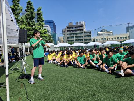 今年度の運動会には、大きく二つの目標がありました。ひとつは、先輩方が築いてくださった取り組みを引き継ぎつつ自分たちらしい新たな要素を加えること、そしてもうひとつは、全ての競技を時間通りに終えることです。まず一つ目の目標に関しては、昨年度から導入された「下グラウンドでの開催」「色(クラス)別Tシャツの配布」「応援団の結成」「新競技である背中渡りの実施」などを継承しました。その上で、今年は「玉入れ」「借り人競争」「台風の目」など一部の競技規則を変更し、工夫を凝らした運動会となるよう話し合いを重ねてきました。昨年は雨天のため実現できなかった暁星幼稚園の園児を迎えての幼稚園競技も今年は無事に開催できとても嬉しく思います。